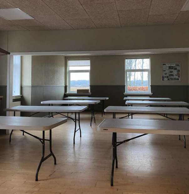 I vinterperioden spilles der badminton og bordtennis i den store sal.