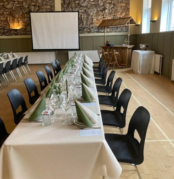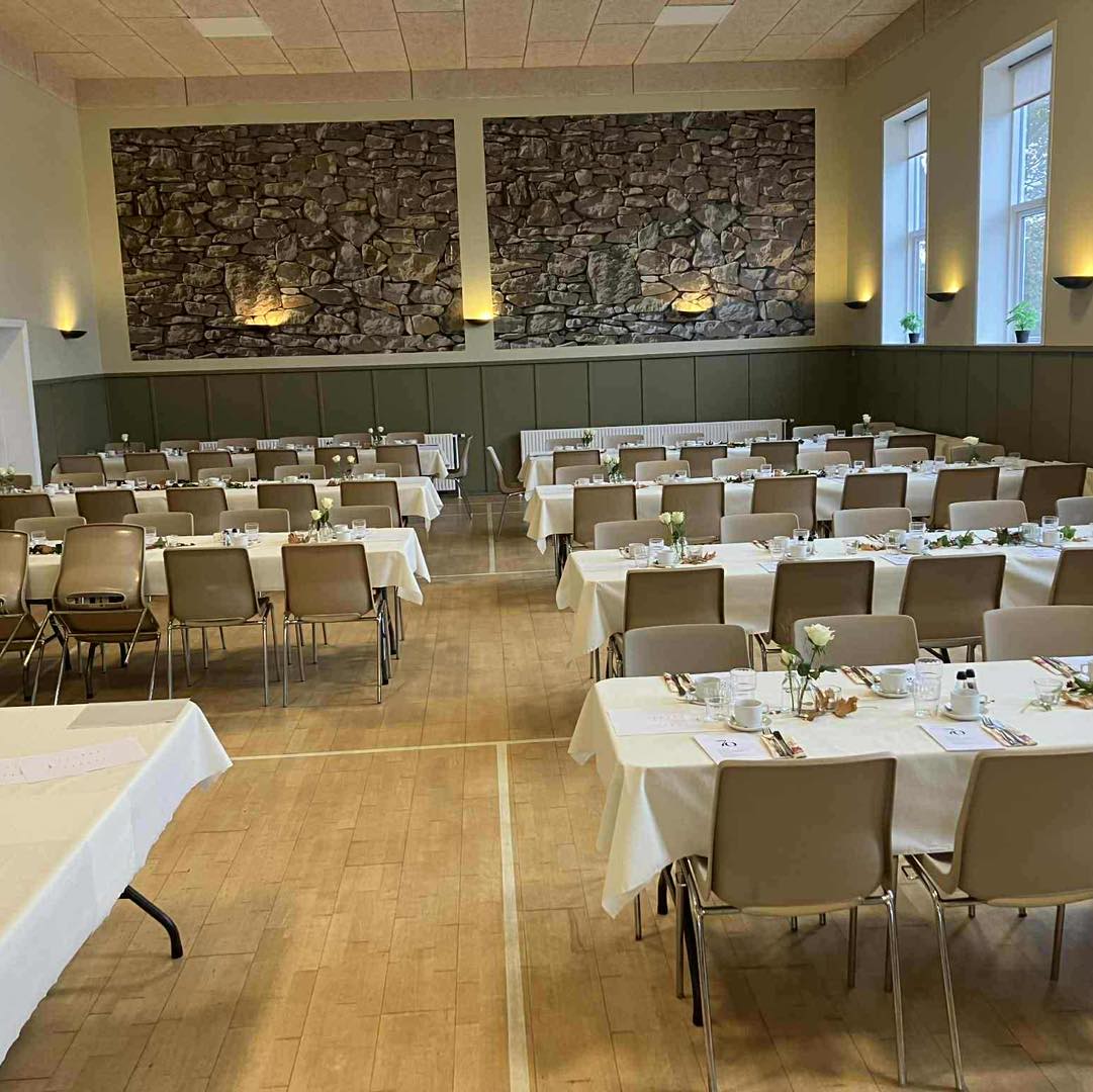 Ved servering ved borde er der plads til ca. 110 gæster.